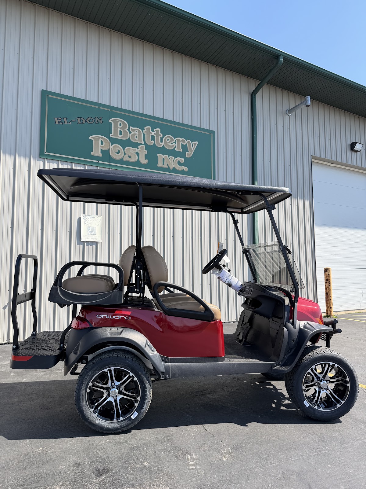 Turn heads in this 2026 Club Car Onward in red, featuring a bold upgraded body and lift kit for a premium stance. Equipped with brand-new batteries and an extended roof, this cart is built for comfort with upgraded seating, a custom dashboard, and a custom steering wheel. Complete with fender flares and a tinted windshield, it is the perfect blend of rugged capability and modern style.